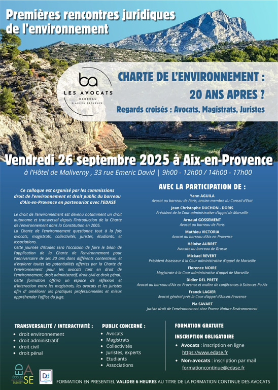 Charte de l'environnement : 20 ans après ? Regards croisés : avocats, magistrats, juristes - 26 septembre 2025