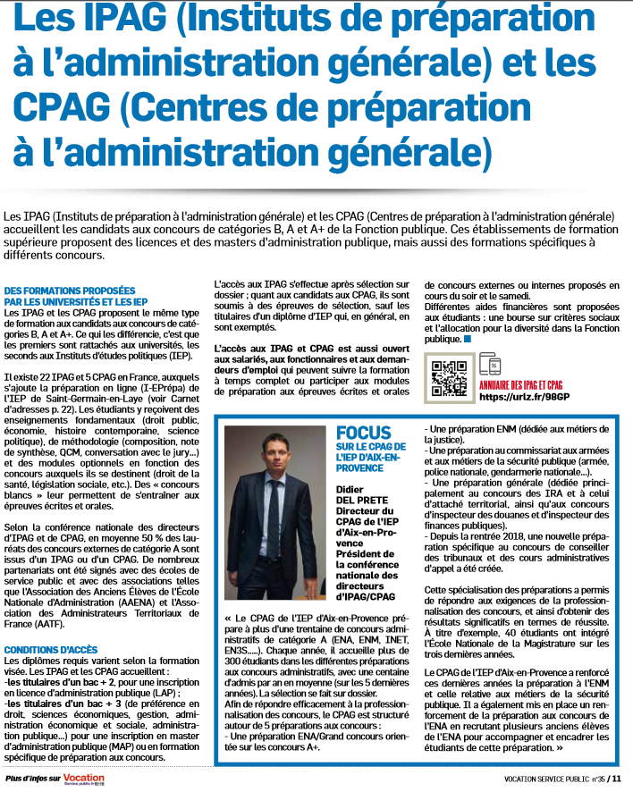 Les IPAG et les CPAG, l'article dans le magazine "Vocation Service Public"